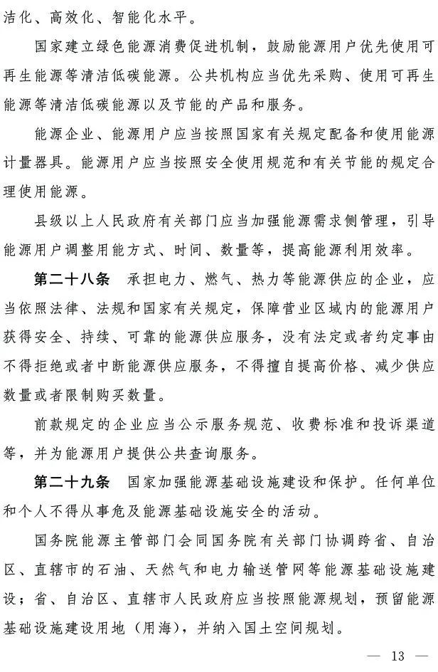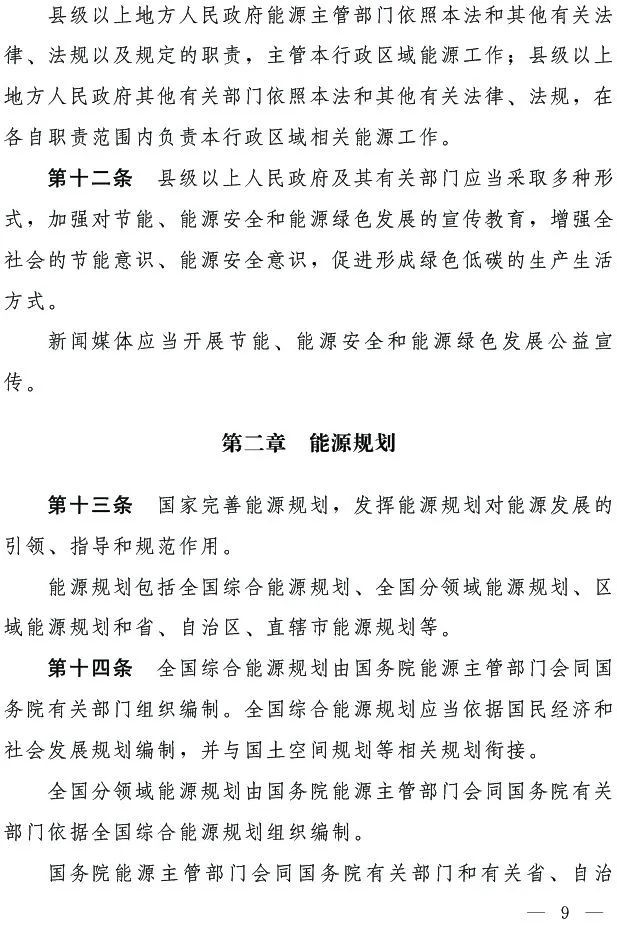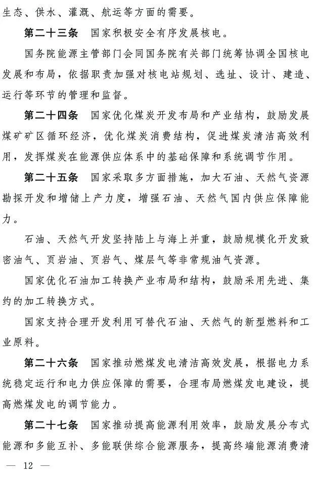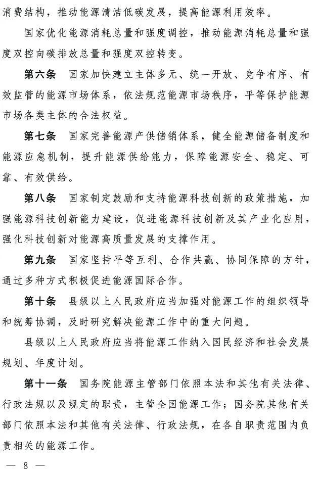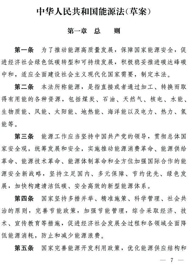 十四届全国人大常委会第九次会议对《中华人民共和国能源法(草案)》进行了审议。4月26日起,《中华人民共和国能源法(草案)》公开征求意见,截止日期为2024年5月25日。