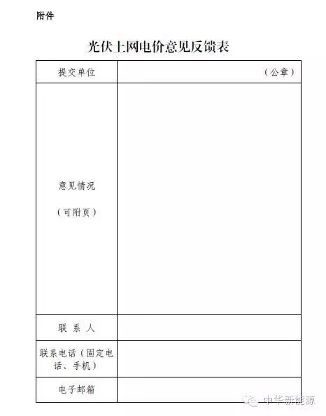 附件:光伏上网电价意见反馈表