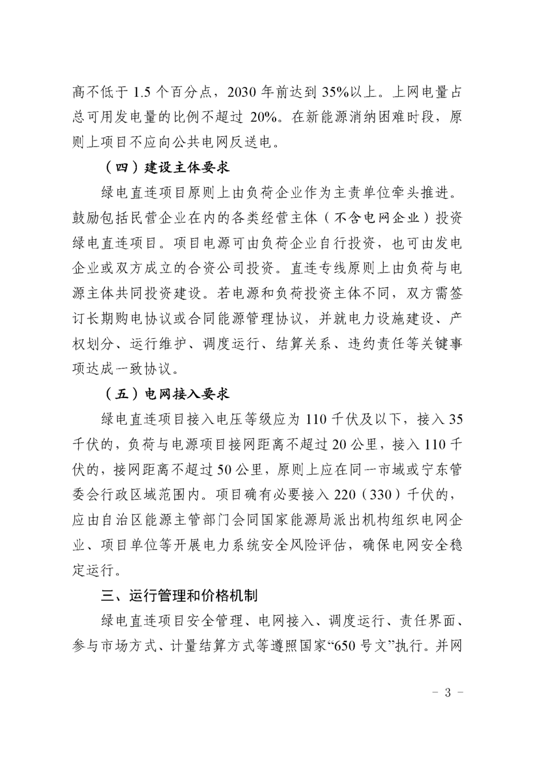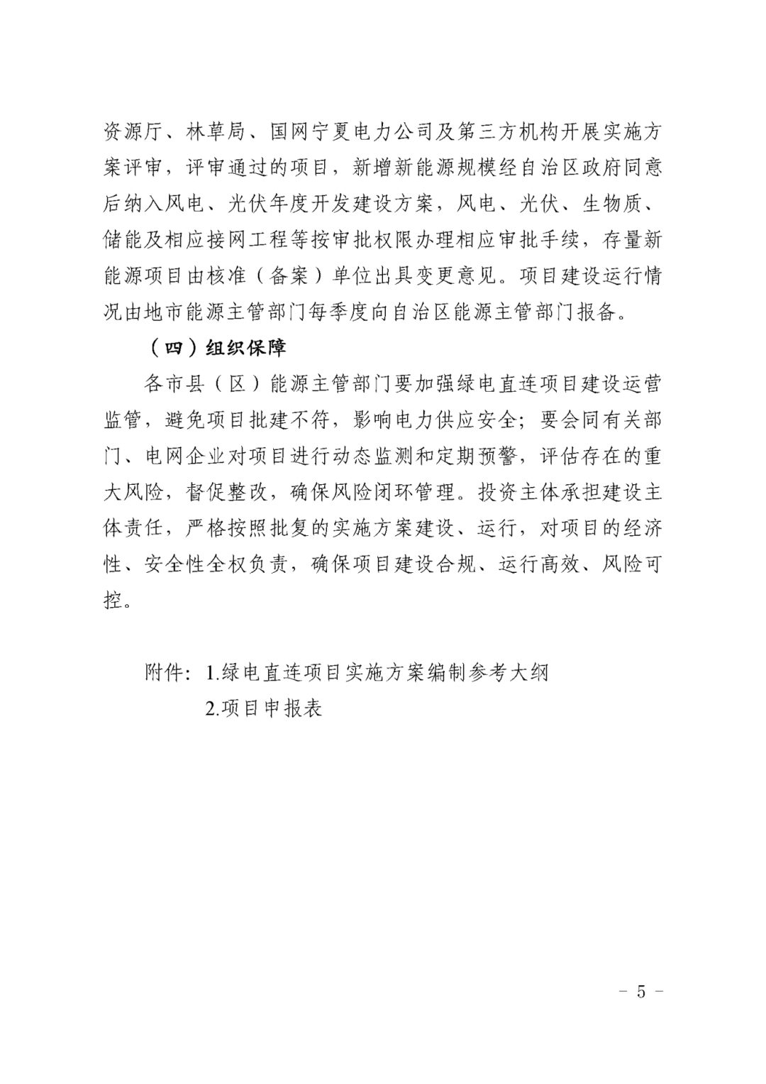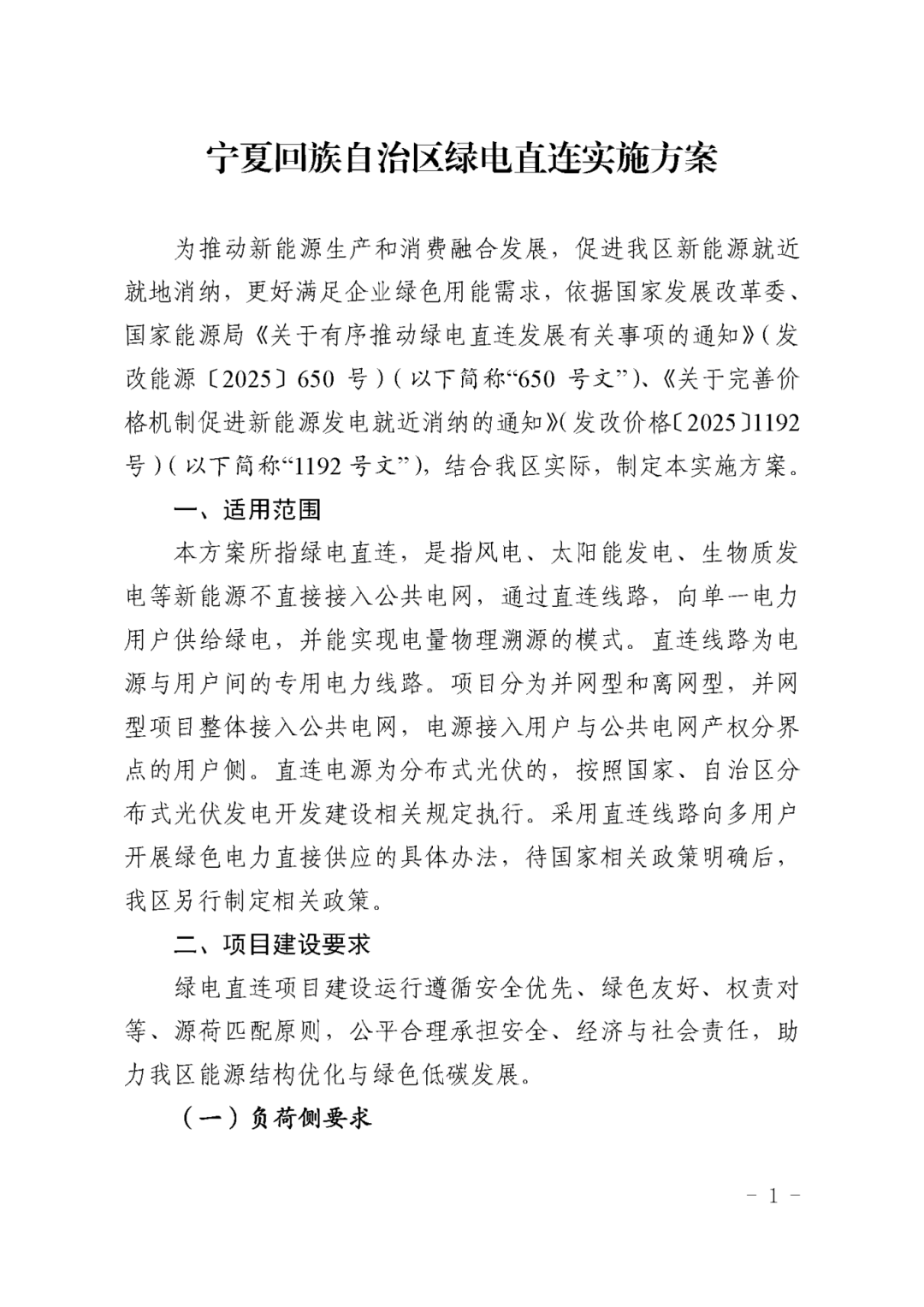 为进一步发挥宁夏绿色能源优势,促进新能源就近就地消纳,按照国家有关文件要求,现将《宁夏回族自治区绿电直连实施方案》印发你们,请认真组织实施。